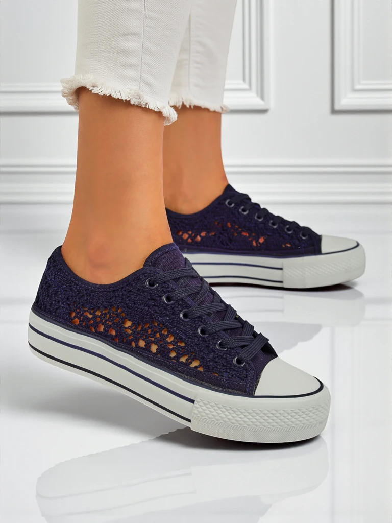 Aureliana – это невероятно стильные женские кроссовки, изготовленные из высококачественной ткани, специально разработанные для женщин, которые любят комфорт и уникальный, модный внешний вид. Верх этих туфель сшит из воздушной ажурной ткани, что обеспечивает отличную циркуляцию воздуха и комфорт даже в теплые летние дни. Этот материал – высококачественный текстиль, который отличается как прочностью, так и нежностью к коже.Внутренняя стелька также изготовлена из мягкой текстильной ткани, что обеспечивает дополнительный комфорт и амортизацию. Плоский каблук и более толстая, гибкая подошва высотой 2,5 см гарантируют устойчивость и поддержку во время ежедневных прогулок или встреч. Эти кроссовки – идеальное предложение для женщин, ценящих городской стиль и комфорт на каждый день.Преимущества использования этих кроссовок – прежде всего, легкость и воздухопроницаемость конструкции. Темно-синий цвет делает обувь отлично сочетающейся со многими стилями. Нежный ажурный узор придает им тонкий шарм и делает весь образ легким и женственным.Предложения по стилизации:1. Повседневный стиль со светлыми джинсами-бойфрендами, белой футболкой и легкой джинсовой курткой на прохладные дни.2. Юбка миди с цветочным узором и легкая блузка – идеальный выбор для весенней прогулки или встречи с подругой.3. Шорты и рубашка оверсайз, завязанная на талии, – отличное предложение для летних выходов в город или на пляж.Чистка и уход: кроссовки следует чистить мягкой щеткой и теплой водой с мягким моющим средством. Не следует стирать их в стиральной машине или сушить непосредственно на солнце, чтобы сохранить первоначальную структуру ткани. Хранить в сухом и проветриваемом месте.Актуальные тенденции: ажурные кроссовки в интенсивных, глубоких цветах, таких как темно-синий, в настоящее время являются одним из самых горячих трендов сезонов весна-лето. Женщины все чаще выбирают обувь, которая не только удобна, но и отличается оригинальной, отделанной вручную деталью. Модель Aureliana сочетает в себе все эти характеристики, что делает ее идеальным выбором для современных женщин, ценящих стиль и комфорт.