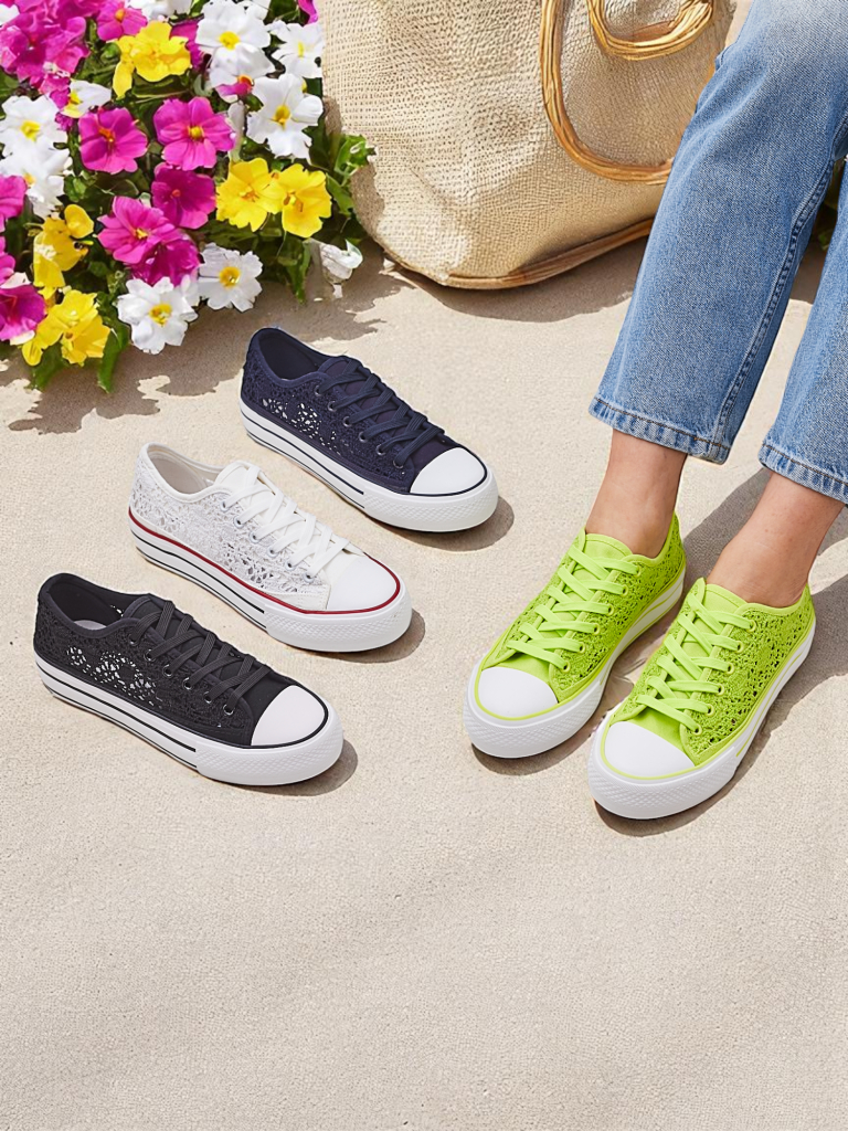 Aureliana to niezwykle stylowe damskie trampki wykonane z wysokiej jakości tkaniny, zaprojektowane specjalnie z myślą o kobietach kochających komfort oraz wyjątkowy, modny wygląd. Cholewka tych butów została uszyta z przewiewnej ażurowej tkaniny, co zapewnia doskonałą cyrkulację powietrza i komfort nawet podczas ciepłych, letnich dni. Materiał ten to wysokogatunkowa tekstylia, które cechują się zarówno wytrzymałością, jak i delikatnością dla skóry.Wkładka wewnętrzna również została wykonana z miękkiej tkaniny tekstylnej, co zapewnia dodatkową wygodę oraz amortyzację. Płaski obcas i grubsza, elastyczna podeszwa o wysokości 2,5 cm gwarantują stabilność oraz wsparcie podczas codziennych spacerów czy spotkań. Trampki te to idealna propozycja dla kobiet ceniących sobie miejski styl oraz wygodę na co dzień.Korzyści z użytkowania tych trampek to przede wszystkim lekkość i przewiewność konstrukcji. Granatowy kolor sprawia, że buty świetnie komponują się z wieloma stylizacjami. Delikatny wzór ażurowy dodaje im subtelnego uroku i sprawia, że całość prezentuje się lekko oraz kobieco.Propozycje stylizacji:1. Casualowa stylizacja z jasnymi jeansami typu boyfriend, białym t-shirtem i lekką kurtką jeansową na chłodniejsze dni.2. Spódnica midi w kwiatowy wzór i lekka bluzka – idealny wybór na wiosenny spacer lub spotkanie z przyjaciółką.3. Szorty oraz oversize’owa koszula związaną w pasie, doskonała propozycja na letnie wyjścia do miasta czy na plażę.Czyszczenie i pielęgnacja: trampki należy czyścić delikatną szczoteczką i letnią wodą z łagodnym detergentem. Nie należy ich prać w pralce ani suszyć bezpośrednio na słońcu, aby zachować pierwotną strukturę tkaniny. Przechowywać w suchym i przewiewnym miejscu.Aktualne trendy: ażurowe trampki w intensywnych, głębokich kolorach, takich jak granat, to obecnie jeden z najgorętszych trendów sezonów wiosna-lato. Kobiety coraz chętniej sięgają po buty, które są nie tylko wygodne, ale wyróżniają się również oryginalnym, ręcznie wykończonym detalem. Model Aureliana łączy te wszystkie cechy, dzięki czemu jest idealnym wyborem dla nowoczesnych kobiet ceniących styl i komfort.