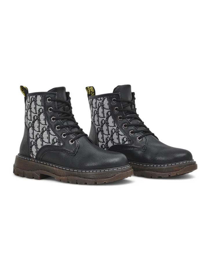 - Удивительные женские ботильоны на плоском каблуке, выполненные из экокожи и ткани с принтом. Внутри обшиты тканью. Модель на шнуровке.