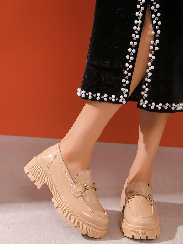 - Красивые женские мокасины на толстой подошве. Модель в повседневном стиле, выполнена из патентной эко-кожи и эко-кожаной стельки. Верх имеет неремovable декор. Носок закругленный. Идеальная база для многих повседневных образов!