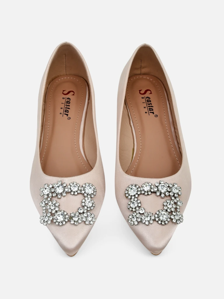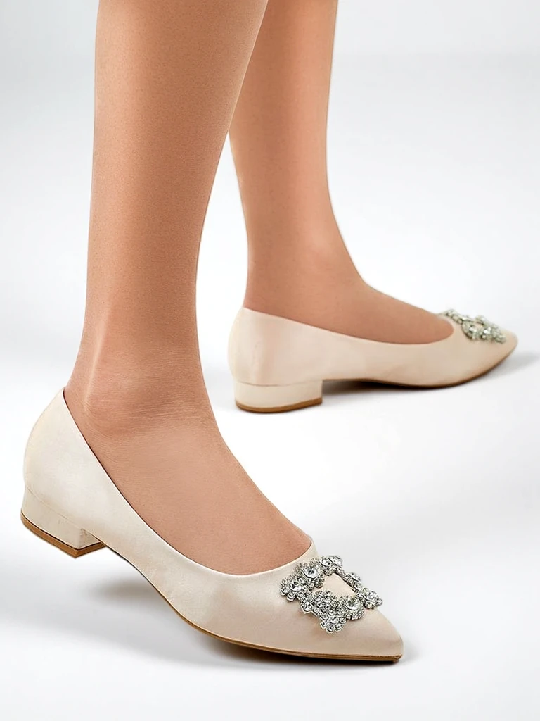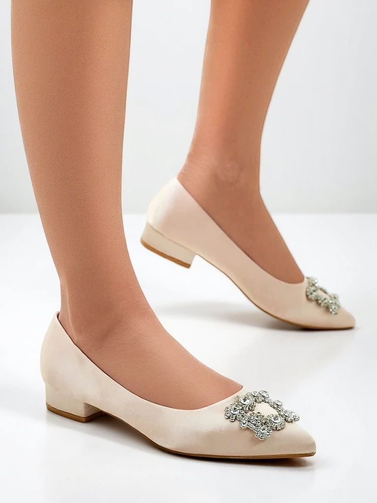 • Уникальные балетки из ткани, похожей на сатин, с заостренным носком. Верх украшен деликатной пряжкой с цирконием. Мягкая экокожаная стелька обеспечивает комфорт. Они идеально подходят для элегантных и модных нарядов!