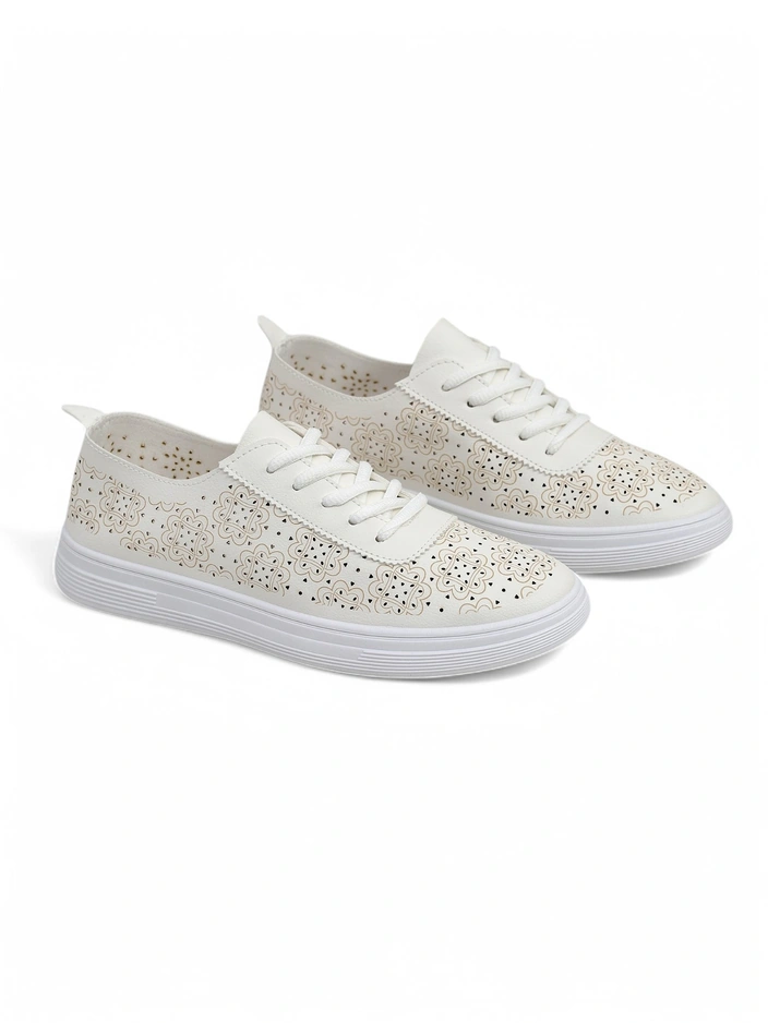 - Оригинальные женские спортивные кроссовки с принтом на плоской подошве - идеальное сочетание стиля и комфорта. Обувь изготовлена из экокожи. Модель на шнуровке, с тканевой стелькой. Идеально подходит для активных людей!