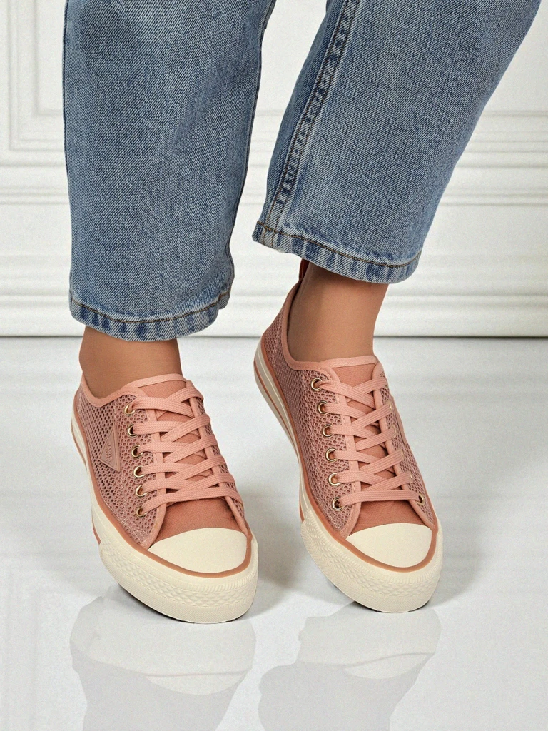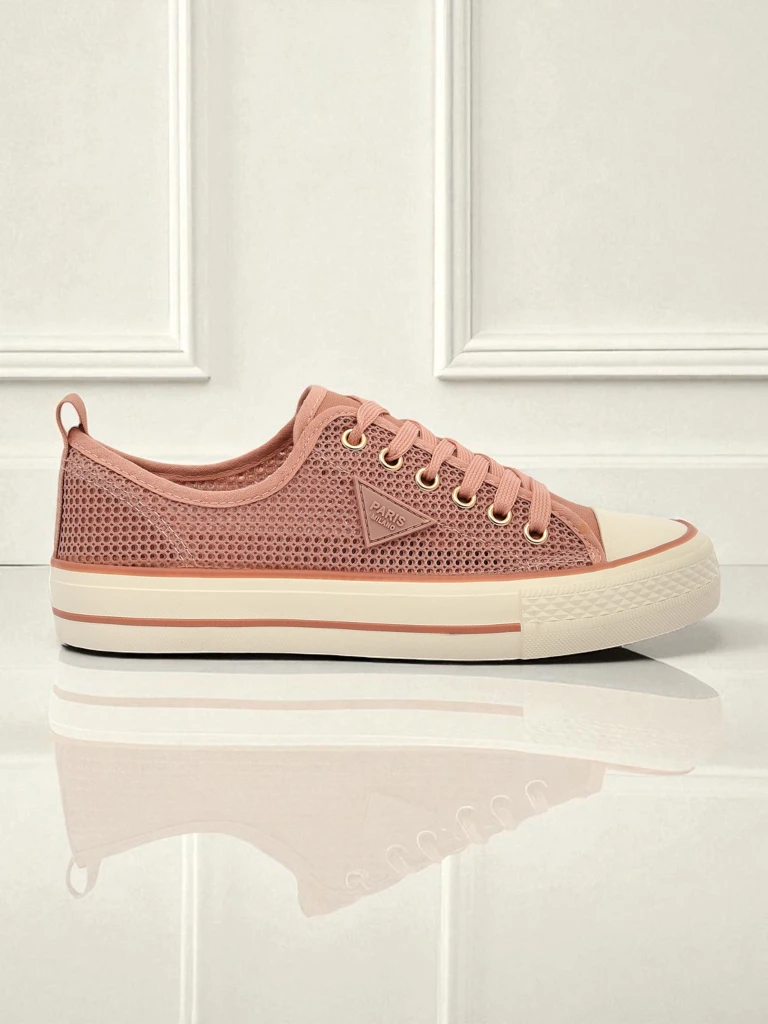 - Klasyczne trampki ażurowe, wnętrze jest wyłożone tkaniną. Bardzo wygodne dzięki gumowej podeszwie. Obuwie pasuje do wielu codziennych stylizacji!