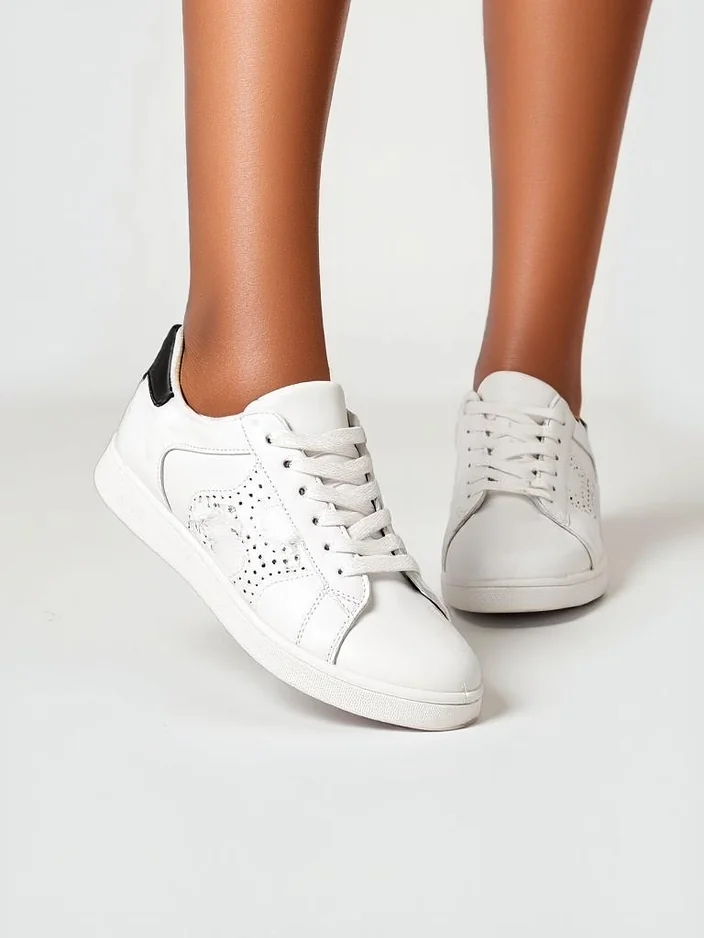 - Женские кроссовки с плоской подошвой - идеальное сочетание стиля и комфорта. Обувь из экокожи. Модель на шнуровке с текстильной стелькой. Идеально подходит для активных людей!
