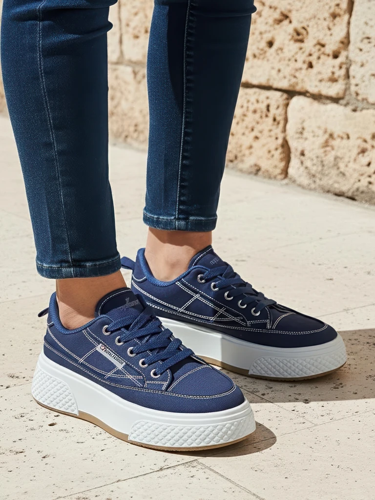 Женские кроссовки Callista на платформе, темно-синие, ткань, весна-лето
