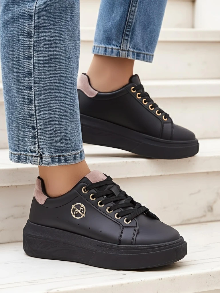 Odkryj sneakersy Erato Nero – wyjątkowe obuwie damskie na platformie, idealne na wiosnę i dla każdej kobiety ceniącej wygodę oraz styl. Wykonane z wysokogatunkowej skóry ekologicznej, połączonej z tkaninową, oddychającą wkładką, gwarantują komfort przez cały dzień. Skóra ekologiczna to nowoczesny materiał, który imituje naturalną skórę przy jednoczesnym szacunku dla zwierząt. Proces produkcji materiału spełnia rygorystyczne normy bezpieczeństwa i ekologii, co potwierdzają międzynarodowe certyfikaty branżowe (np. OEKO-TEX, jeśli dostępne).Buty Erato Nero wyróżniają się klasycznym, czarnym kolorem, złotymi detalami przy sznurowadłach oraz logotypem, które dodają elegancji każdej stylizacji. Platforma o wysokości 5 cm wysmukla sylwetkę, zapewniając stabilność i wygodę dzięki odpowiedniemu wyprofilowaniu podeszwy oraz amortyzującemu wnętrzu. Nowy stan obuwia gwarantuje świeżość oraz najwyższą jakość wykonania.Korzyści z noszenia sneakersów Erato Nero to nie tylko wygoda, ale także uniwersalność – świetnie sprawdzą się zarówno w codziennych, jak i bardziej eleganckich zestawieniach. Delikatna tkanina wkładki chroni stopę przed otarciami, a lekkość konstrukcji zapewnia komfort podczas dłuższych spacerów.3 pomysły na stylizację: 1. Casualowy look: zestaw z jeansami, białym t-shirtem i ramoneską – klasyka na miejski spacer.2. Streetwear: połącz z szerokimi spodniami cargo oraz krótkim topem – modny, młodzieżowy outfit.3. Elegancja na luzie: sneakersy z czarną sukienką midi i oversize’ową marynarką – styl do biura lub spotkanie z przyjaciółmi.Pielęgnacja: Skórę ekologiczną czyść wilgotną, miękką ściereczką lub specjalnymi preparatami przeznaczonymi do tego typu materiału. Unikaj długotrwałego kontaktu z wodą oraz bezpośredniego działania promieni słonecznych, aby nie dopuścić do odbarwień. Przechowuj buty w przewiewnym miejscu, najlepiej w oryginalnym pudełku lub na półce.Trendy: Sneakersy na wysokiej platformie to obecnie jeden z najsilniejszych trendów w modzie ulicznej. Dzięki uniwersalnej kolorystyce i nowoczesnej linii Erato Nero doskonale wpisują się w aktualny klimat modowy, pozwalając na swobodne miksowanie ich w wielu stylizacjach wiosennych.