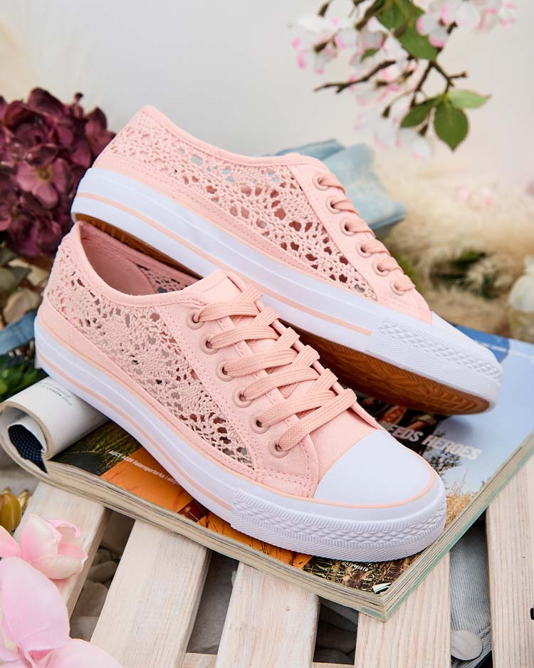 Розовые женские кроссовки Ткань Kalipso – ажурные сникеры на плоской подошве