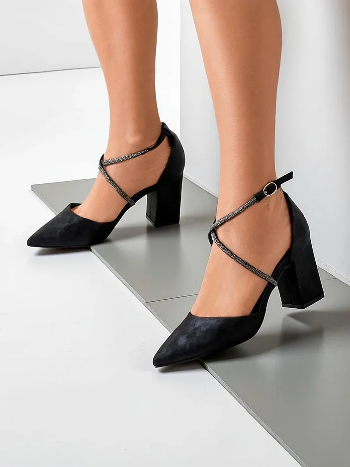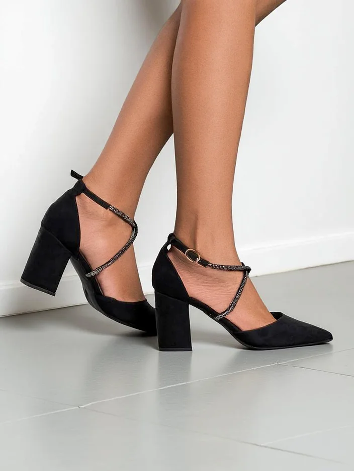 07198 Royalfashion Женские туфли из экосайды на ремешках Eurole 12345678 Элегантные женские туфли на квадратном каблуке, сделанные из экосайды. Внутри обуви подкладка из экокожи, а заостренный носок добавляет элегантности! Кроме того, декоративные ремешки с rhinestones!
