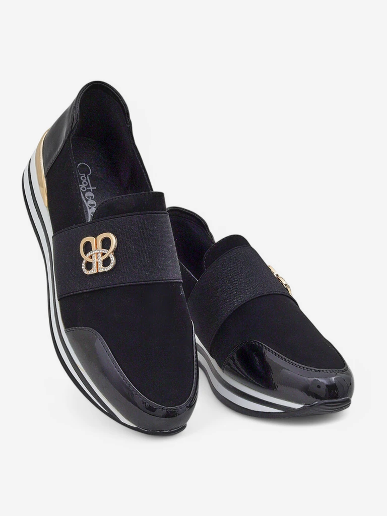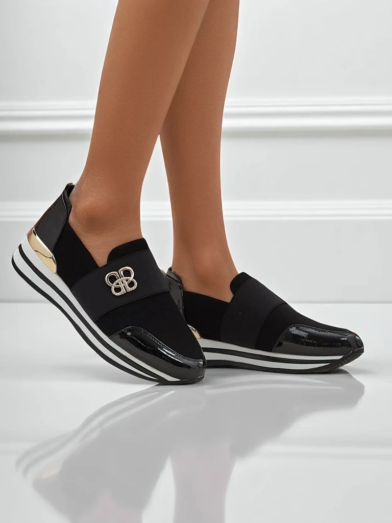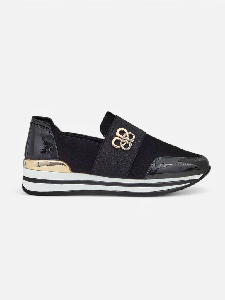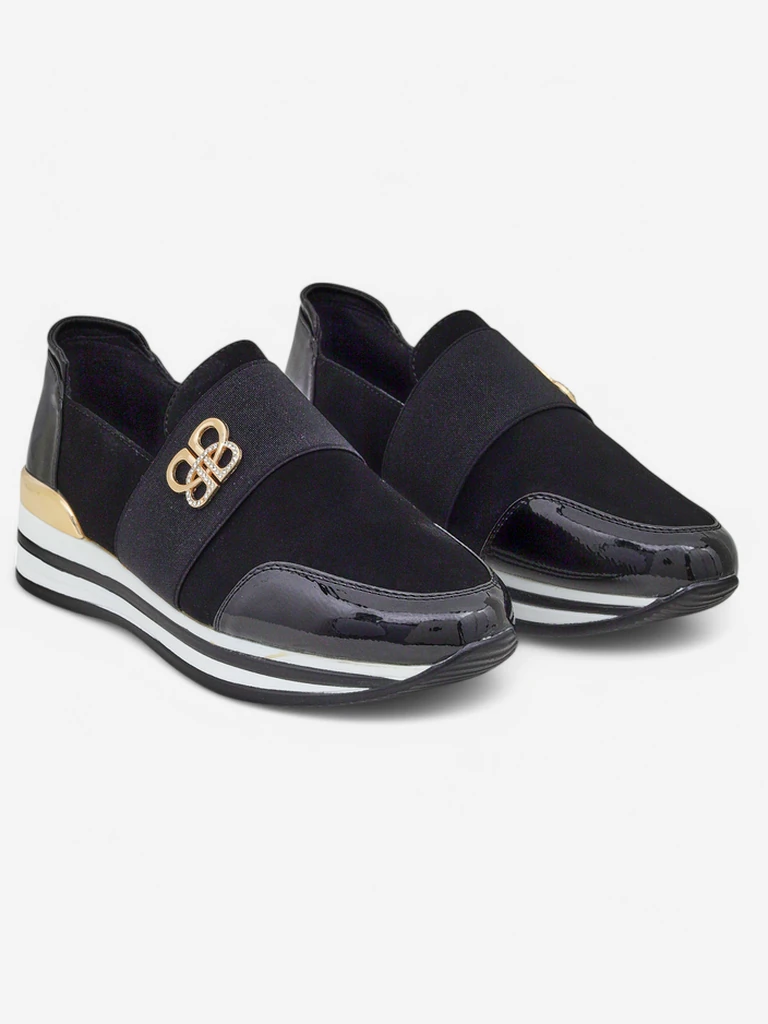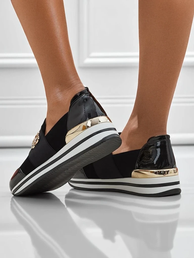 Женские слипоны Elektra Nero с золотым акцентом, экокожа, 3,5 см