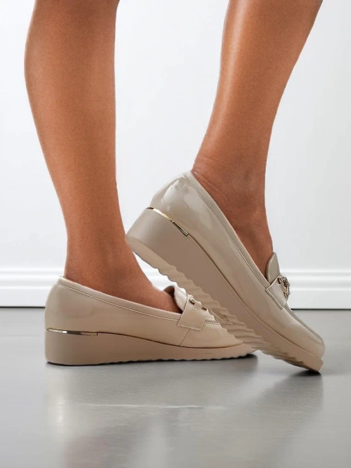 - Красивые женские мокасины на низком каблуке. Модель выполнена в повседневном стиле и изготовлена из экокожи с натуральной кожаной стелькой. Носок округлый и украшен золотыми элементами с стразами. Идеальная основа для многих повседневных нарядов