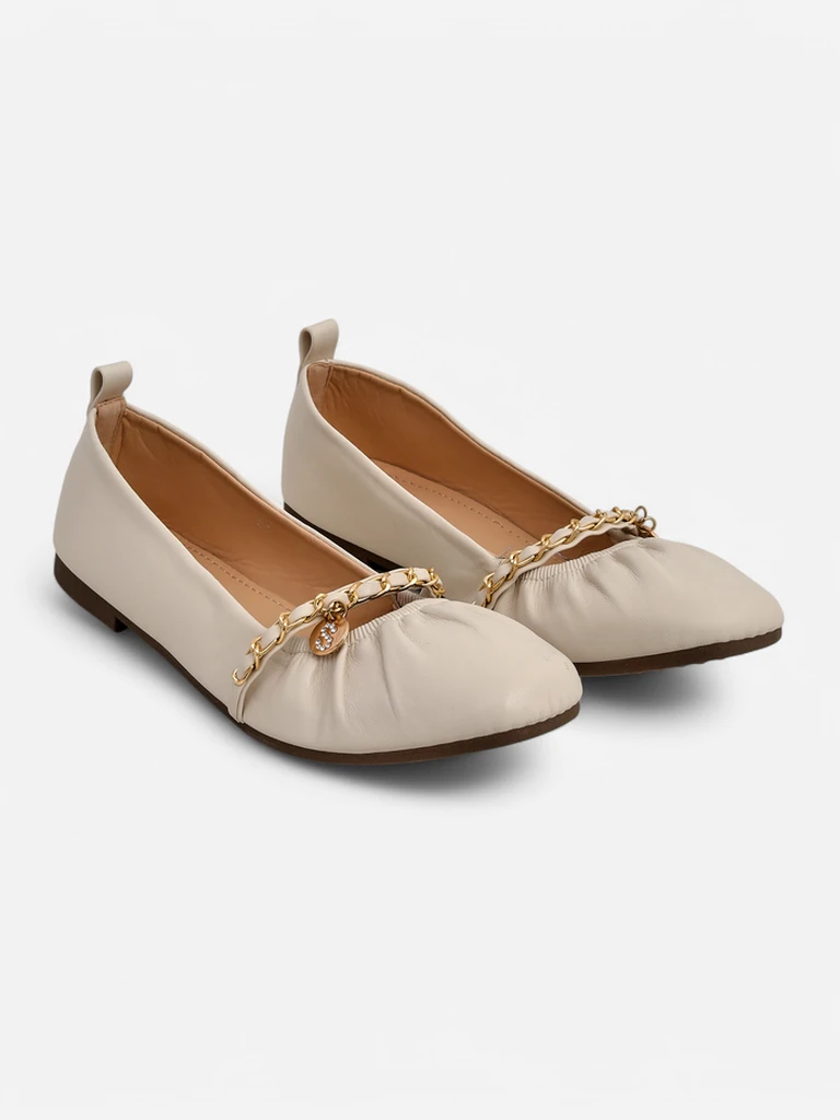 Женские балетки Aelia бежевые из экокожи с декоративной цепочкой ITALIA