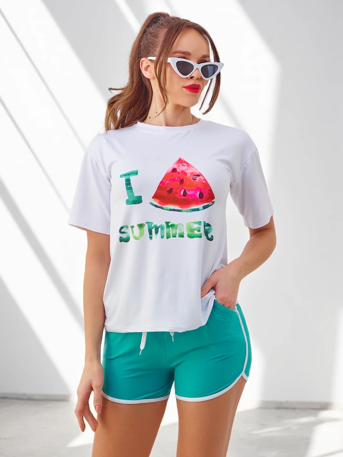 Спортивный комплект Royalfashion для женщин с футболкой и шортами Арбуз