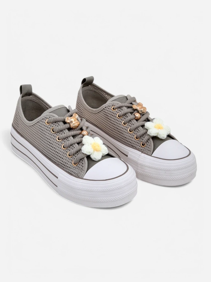 - Перфорированные кроссовки из ткани, внутренняя часть также обшита материалом. Очень удобные благодаря резиновой подошве. Обувь подходит к многим повседневным нарядам!