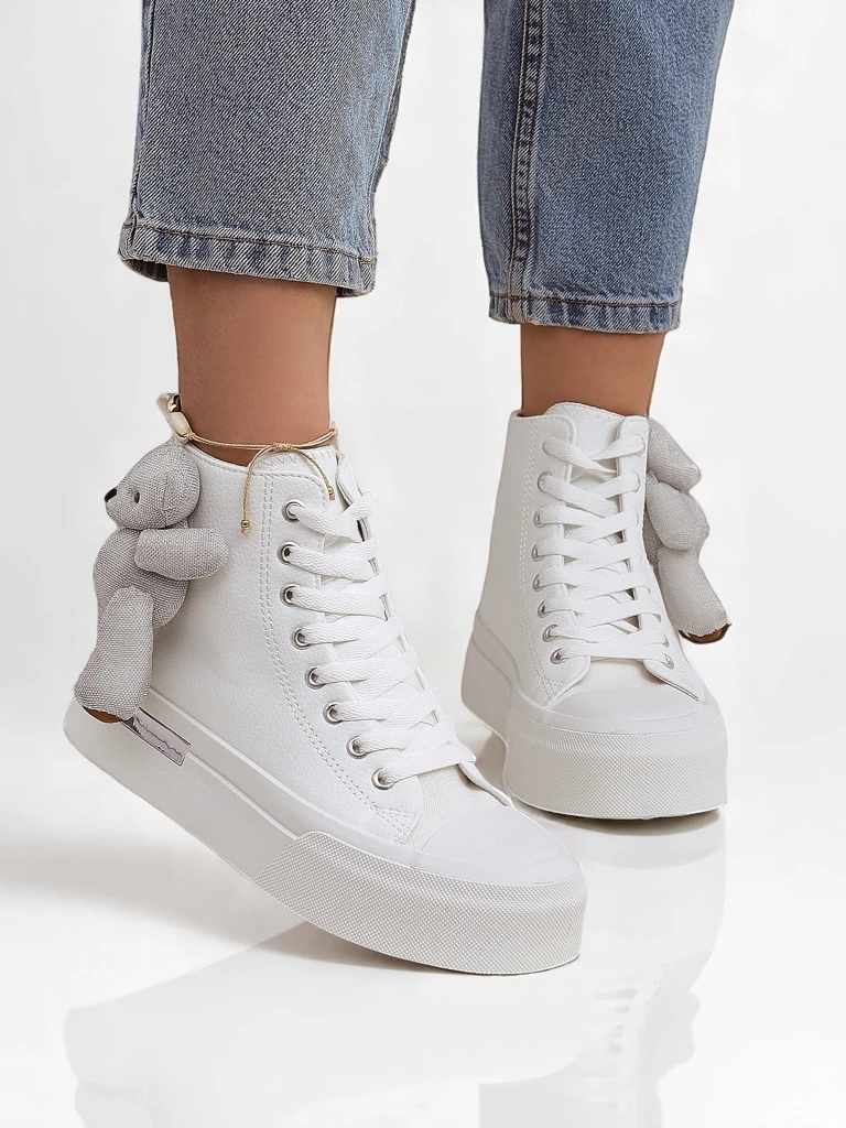 - Очаровательные кеды Теди выполнены из экокожи с тканевой стелькой и декоративным мишкой на верхней части. Высокий силуэт придаст любому образу характер – удобно и оригинально!