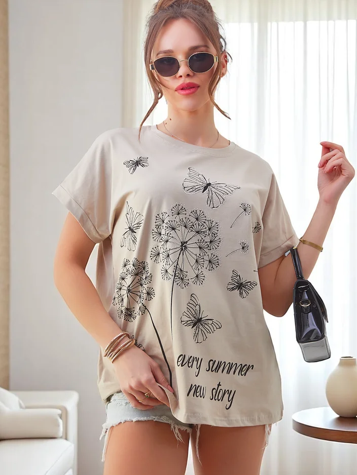 Женская хлопковая футболка Royalfashion с одуванчиками и бабочкой