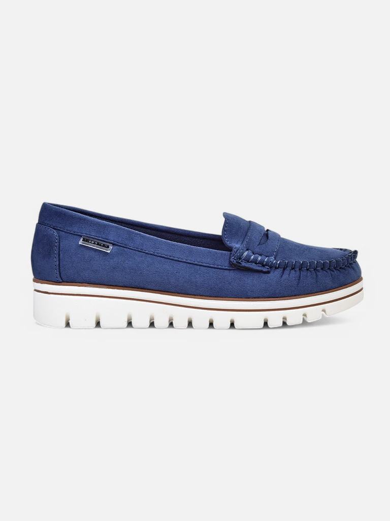 - Lekkie, damskie mokasyny na płaskiej podeszwie. Model w stylu casual i jest wykonany ze skóry ekologicznej zamszowej, wkładka to skóra naturalna. Idealne do wiosennych outfitów!.