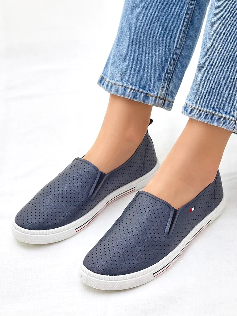 - Перфорированные женские следы кроссовки из эко-кожи. Подкладка из ткани. Идеальный выбор для повседневной носки!