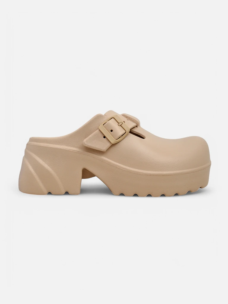 • Подчеркните свой летний стиль и наслаждайтесь комфортом с этими сандалями на каблуке. Модель выполнена из резинового пластика. Украшена круглым носком. Платформа украшена пряжками. Это идеальный выбор для летних дней!