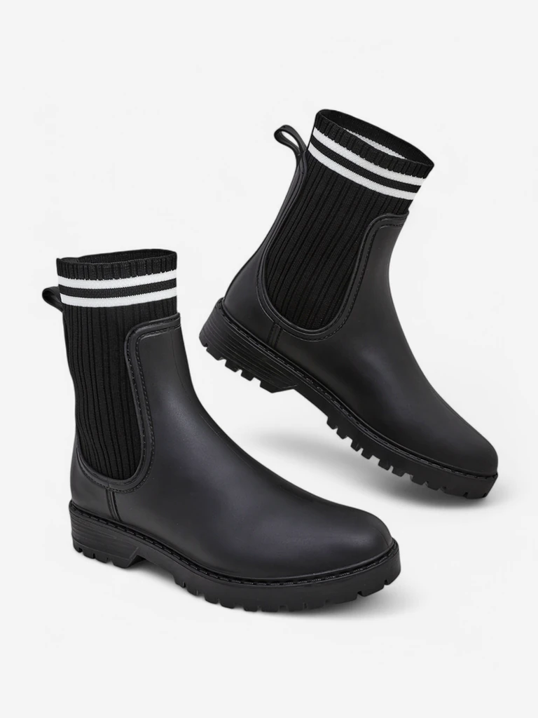 - Классические женские дождевики на плоском каблуке, изготовленные из резинового материала с высокой текстильной вставкой, напоминающей носок. Внутри имеется текстильная стелька. Идеально подходят для весенних дождливых дней!