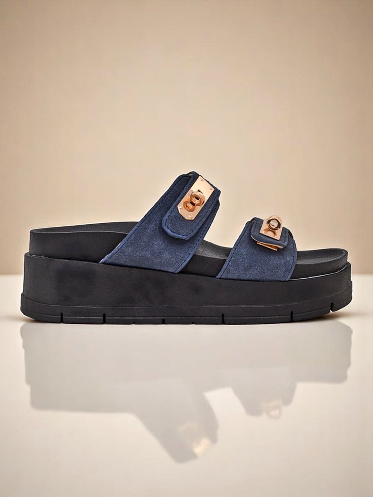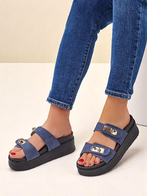 Шлепанцы на толстой подошве — один из самых горячих трендов сезона. Aurelia — идеальный выбор для женщин, которые ценят комфорт и стиль. Темно-синий цвет и золотая пряжка — это вневременное сочетание, которое никогда не выходит из моды.