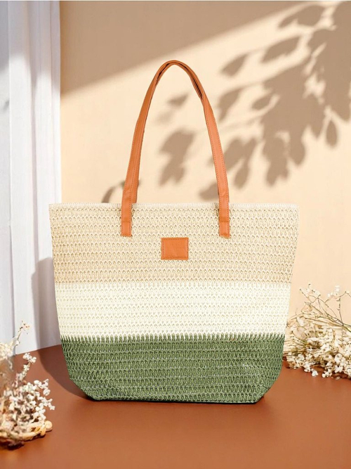 - Большая плетёная соломенная сумка с ярким рисунком из широких полос. Одно отделение, карман на молнии. Стильная, вместительная – идеально подходит для лета и отпуска!