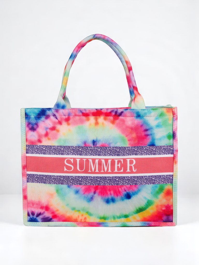 - Большая женская сумка из ткани с ярким рисунком и надписью "SUMMER". Одно отделение, легкая и вместительная — идеально подходит для пляжа, отдыха и летних образов!