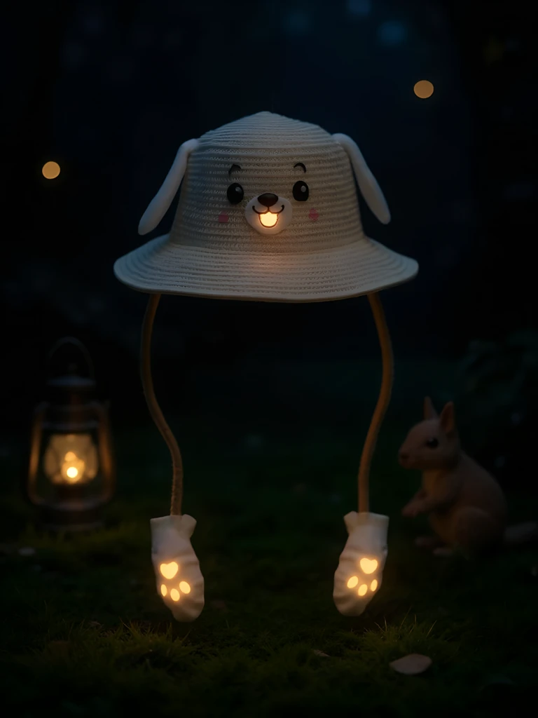 - Детская соломенная шляпа с изображением щенка и свисающими, светящимися ушками в виде лапок. Легкая, дышащая, с LED-подсветкой, которая приносит волшебство и радость в каждое летнее приключение!