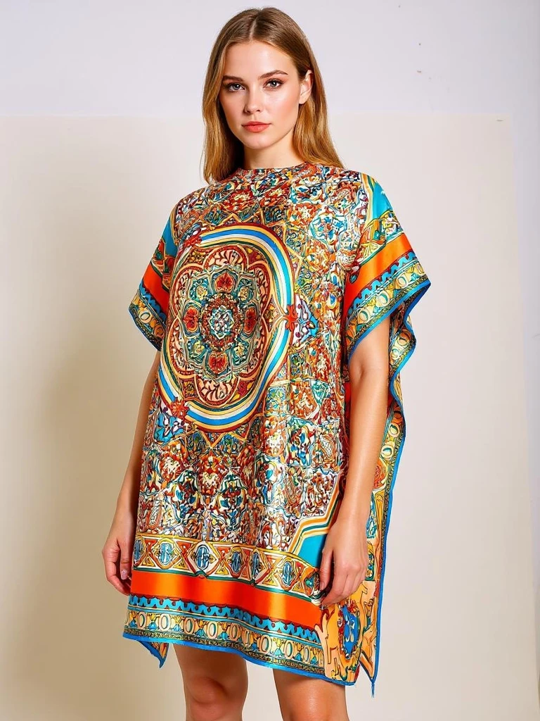 - Легкая, узорчатая пляжная туника-парео – идеальный выбор для лета. Воздушная и стильная, она прекрасно подойдет для пляжа или бассейна. Подчеркивает женственный силуэт, обеспечивая комфорт и модный вид в жаркие дни. Незаменимая вещь для любого отпуска!