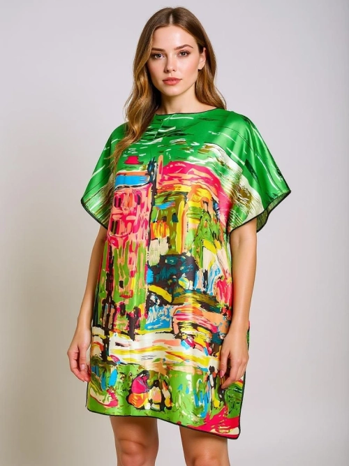 Цветное парео с художественным принтом отлично вписывается в актуальные тенденции моды resort wear. Яркие цвета и энергичные мотивы, вдохновленные художественной живописью, царят на показах летней моды. Эта модель позволяет выразить индивидуальность и привлекает внимание, подчеркивая естественное обаяние и женственный стиль.