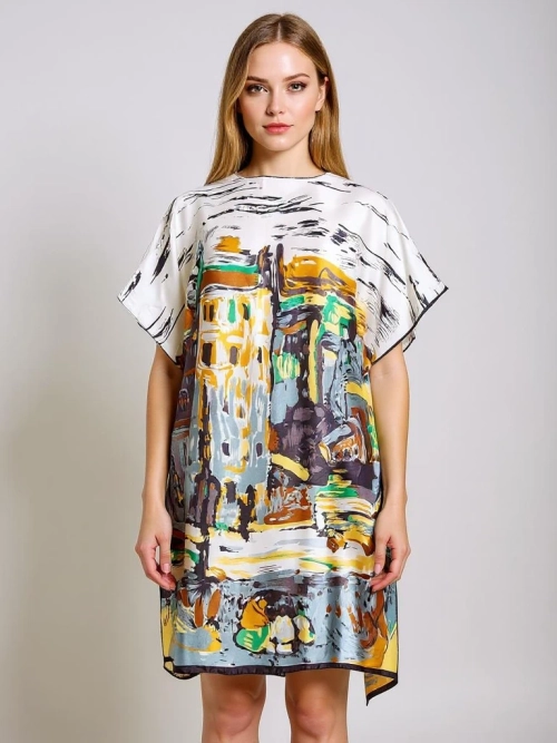 • Легкая, узорчатая пляжная туника типа парео – идеальный выбор на лето. Воздушная и стильная, она прекрасно подойдет для пляжа или бассейна. Подчеркивает женственный силуэт, обеспечивая комфорт и модный вид в жаркие дни. Незаменимая вещь для любого отпуска