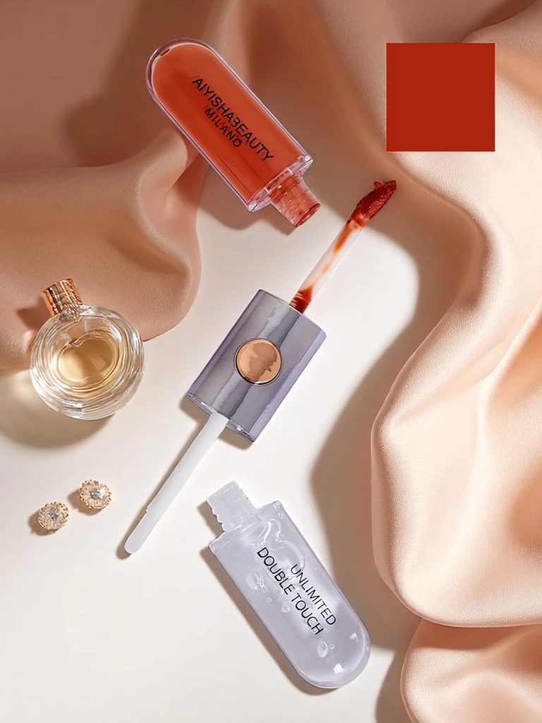 - Помада и прозрачный блеск 2-в-1 — идеальное сочетание: цвет и блеск в одном продукте. Помада придаёт губам насыщенный оттенок, а блеск добавляет зеркальное сияние и увлажнение. Можно использовать вместе или по отдельности — результат всегда безупречен!