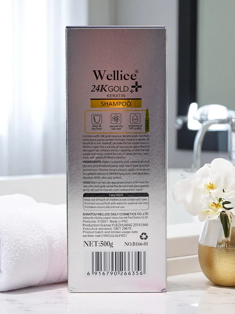 Профессиональный шампунь для волос с кератином 24K Gold – Интенсивное увлажнение и разглаживание волос 5 в 1