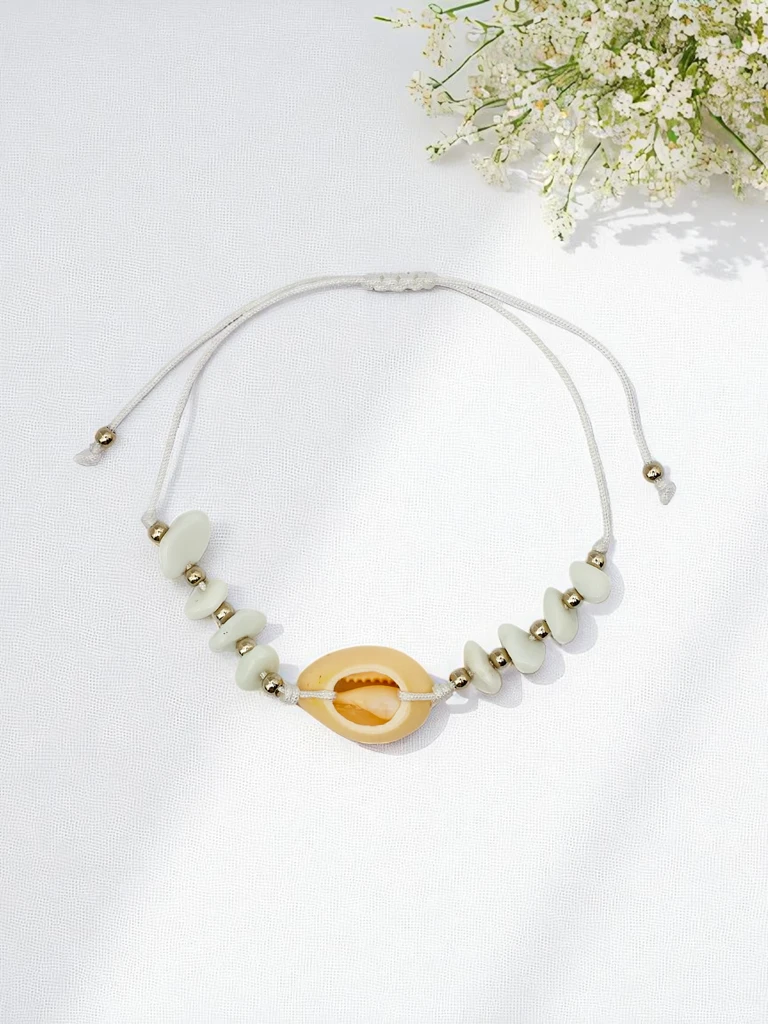 - Регулируемый браслет на шнурке, украшенный натуральной ракушкой. Нежный и полный морского очарования, идеально подходит для летних дней. Придает пляжное настроение любому образу, добавляя ненавязчивый праздничный акцент. Идеально для теплых дней у моря!