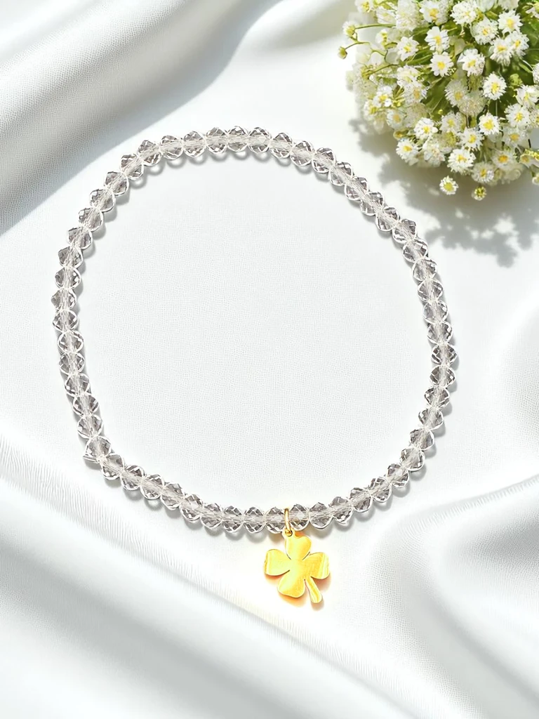 - Браслет с бусинами и подвеской в виде клевера — это стильный талисман на удачу. Нежный и элегантный, он символизирует благополучие, надежду и положительную энергию. Идеально подходит для повседневной носки как ненавязчивый аксессуар с уникальным посланием
