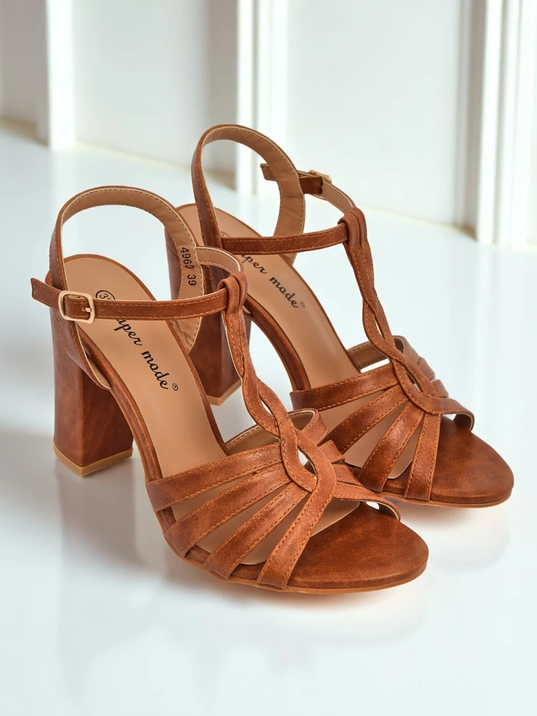 • Женские босоножки на высоком блочном каблуке из экокожи с декоративными переплетёнными ремешками и застёжкой-пряжкой. Стильные и удобные – идеально подходят для летних прогулок, вечеринок и элегантных мероприятий.