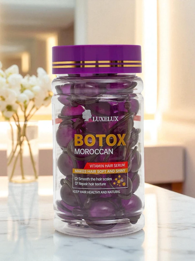 - Сыворотка для волос Ботокс Марокканская, мультивитамин с аргановым маслом, глубоко увлажняет и разглаживает волосы.