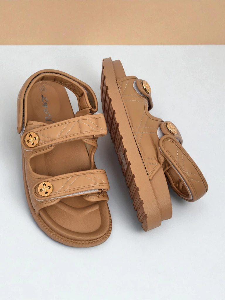 Сандалии Callista Classico – это сочетание современного комфорта с вневременной элегантностью, вдохновленной итальянским стилем. Верх выполнен из высококачественной, мягкой экокожи, которая гарантирует длительный комфорт при ношении и устойчивость к интенсивному использованию. Экокожа, используемая в сандалиях, соответствует европейским стандартам безопасности и легко чистится. Толстая амортизирующая подошва из легкой пены EVA отлично поглощает удары и обеспечивает мягкость шага даже при ходьбе в течение всего дня. Двухступенчатые застежки-липучки позволяют индивидуально подогнать обувь по форме стопы, стабилизируя ее и защищая от натирания. Золотые декоративные пуговицы в форме цветка добавляют образу утонченной элегантности. Сандалии идеально сочетаются с различными стилями: 1. Городской стиль: сочетайте их с широкими льняными брюками и классической белой футболкой – получите очень модный, повседневный образ. 2. Элегантный минимализм: сочетайте их с плиссированной юбкой миди и простой рубашкой оверсайз. 3. Летняя непринужденность: наденьте сандалии с воздушным платьем или короткими шортами с топом на бретельках – отлично подходит для прогулок или летних поездок. Чтобы поддерживать сандалии в идеальном состоянии, рекомендуется протирать их влажной тканью и сушить вдали от прямых источников тепла. Избегайте погружения в воду и длительного контакта с УФ-излучением, которое может повлиять на цвет материала. В настоящее время тренд athleisure и повседневный комфорт определенно доминируют в обувной моде – сандалии с толстой подошвой и спортивными липучками являются абсолютным маст-хэвом. Модель Callista Classico бежевого цвета подходит практически ко всему, обеспечивая стильное и универсальное дополнение к вашему гардеробу на сезон весна/лето.