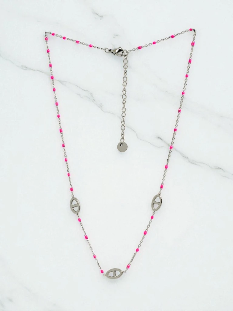 Почему стоит выбрать это ожерелье? Сочетание холодного блеска серебра с сильным цветовым акцентом привлекает внимание и прекрасно дополняет многие стили. Оно легкое, удобное в ношении и позволяет выразить себя через тонкую деталь.