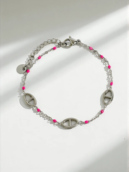 Браслет Callista Elegantia со звеньями и розовыми бусинами, хирургическая сталь
