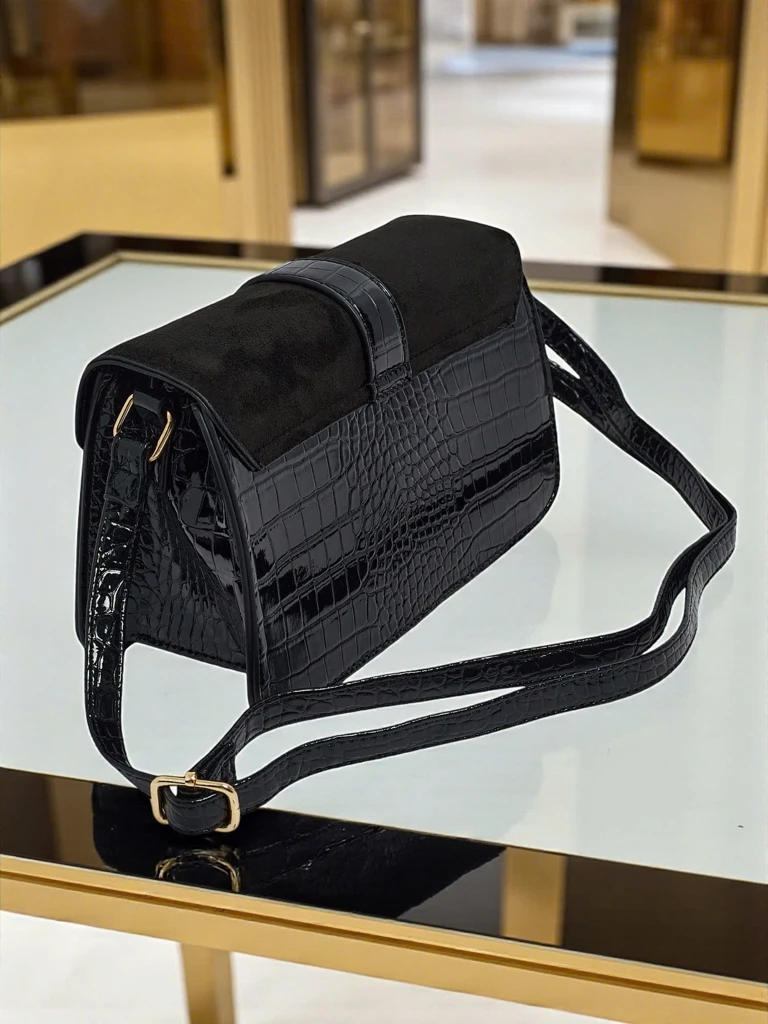 - Маленькая сумочка из лакированной экокожи с элегантным тиснением и вставкой из экозамши. 1 отделение, регулируемый ремешок обеспечивают удобство и стиль. Идеальна для выхода в свет – компактная форма, которая привлекает внимание.