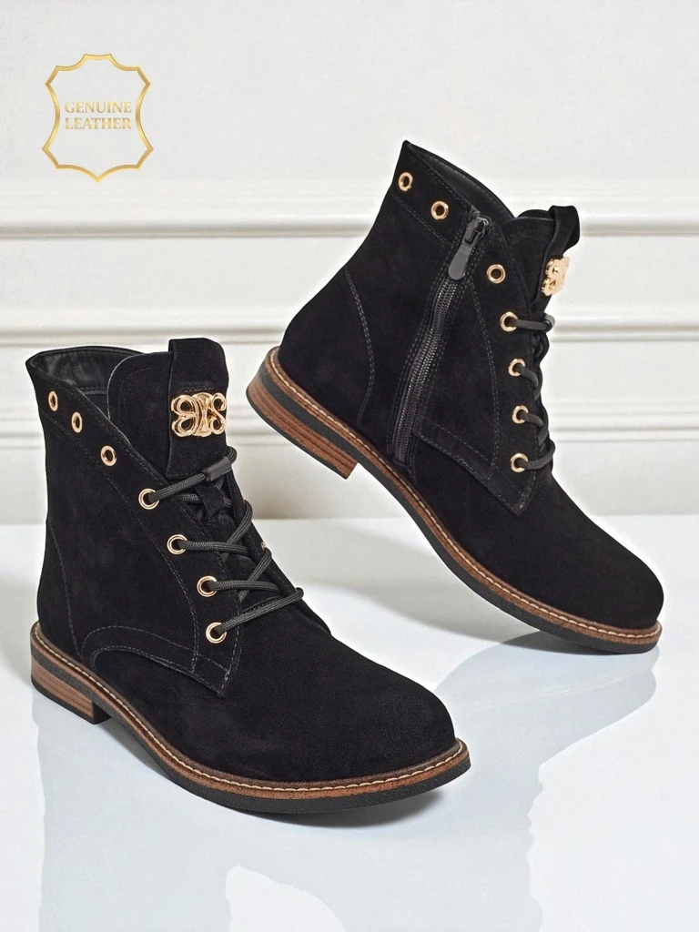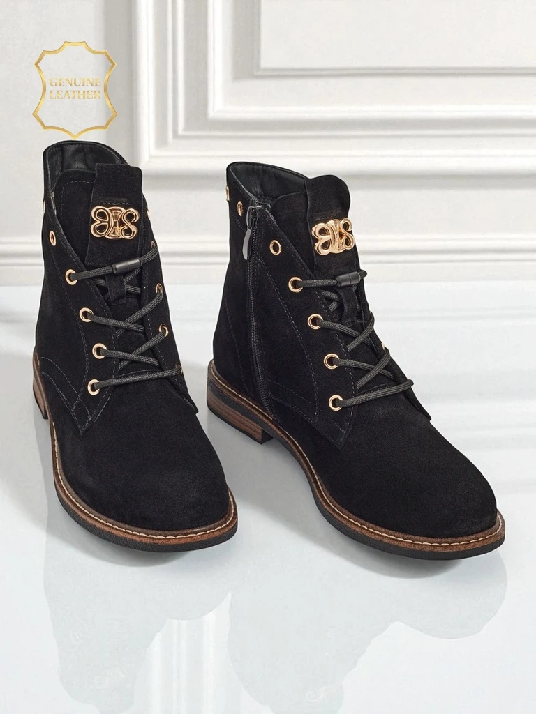 Ботинки женские Aurelia Romano из натуральной замши – коричневые, с мехом.