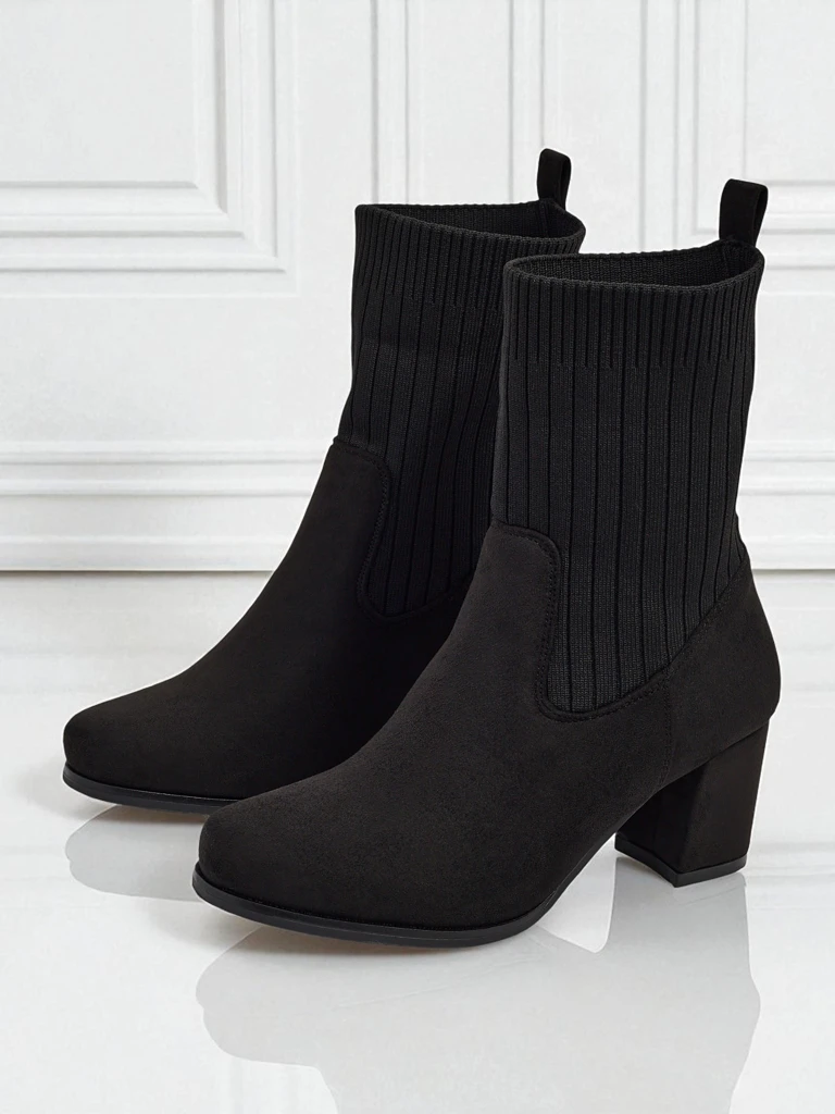 Ботильоны женские эко-замшевые на каблуке-столбике со вставкой а-ля носок LumenThorn