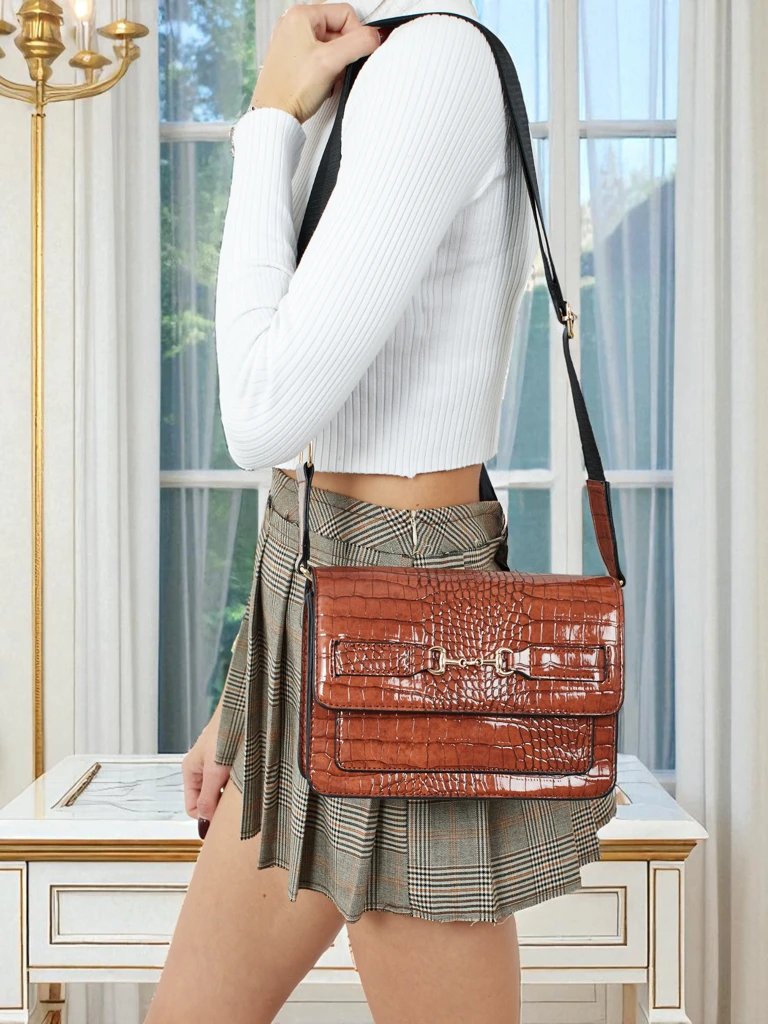 - Сумка из лакированной экокожи с тиснением. 1 отделение, 3 кармана, застежка-молния и регулируемый ремешок. Стиль и функциональность в идеальном исполнении.