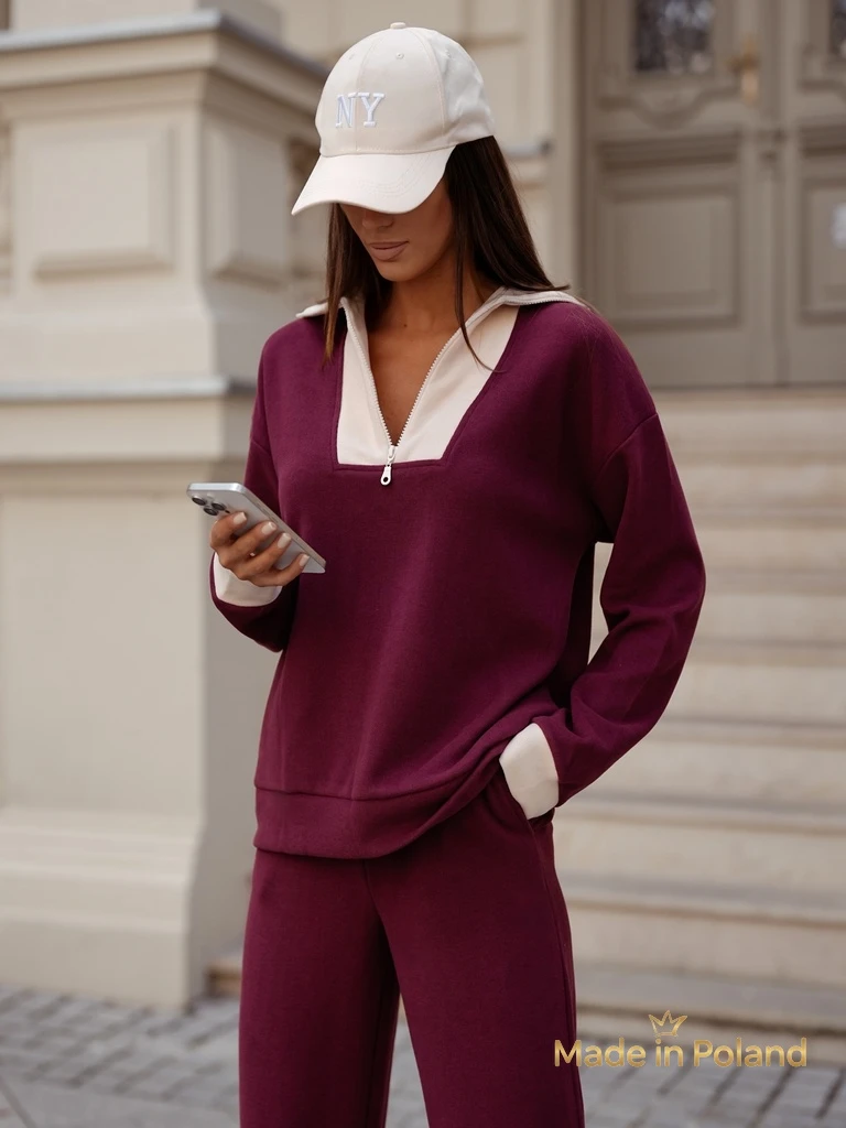 - Женский трикотажный комплект из приятного хлопкового материала. Блузка с молнией на вырезе. Длинные брюки с резинкой на талии и 2 карманами. Почувствуйте стиль в этом замечательном комплекте!