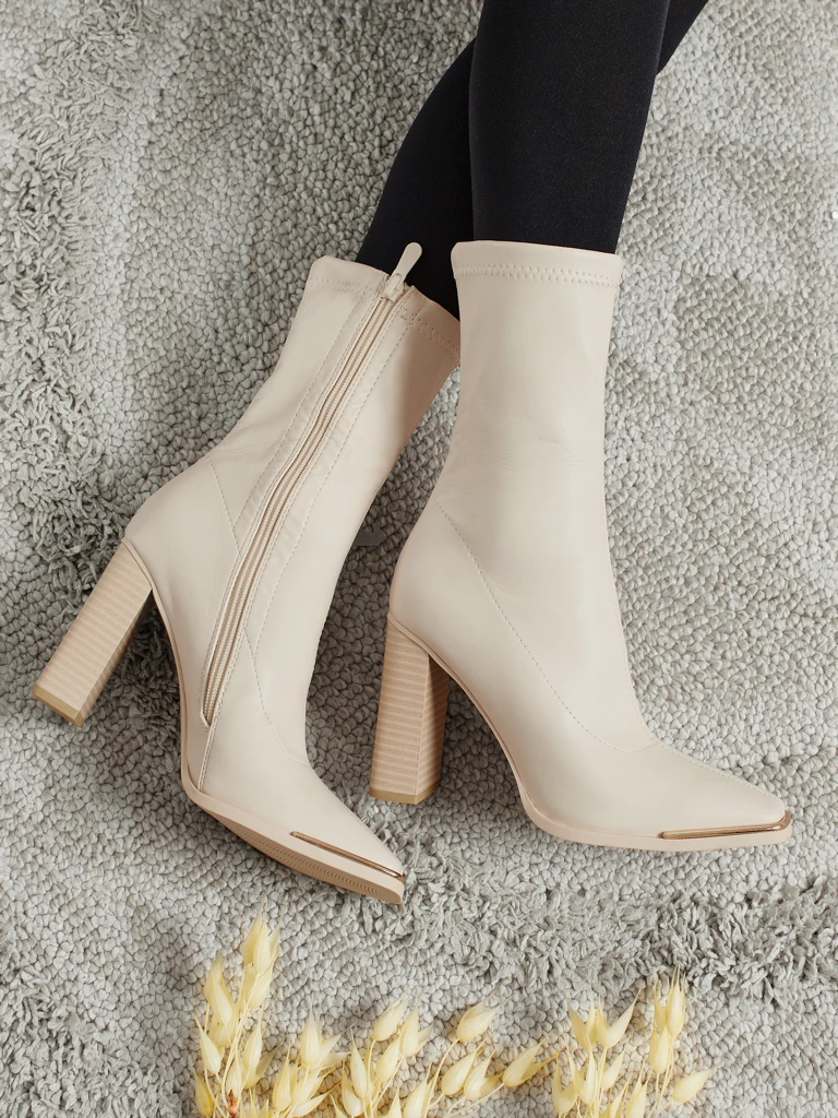 • Удобные ботильоны на каблуке-столбике, выполненные из экокожи. Модель застегивается на молнию. Имеет тканевую подкладку.