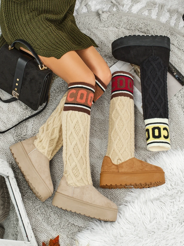 - Отличные женские зимние ботинки-снегоходы на толстой платформе. Верх выполнен из эко-замши, внутри утеплены мехом. Дополнительно имеют высокий тканевый верх в стиле носка. Идеальная база для зимы!