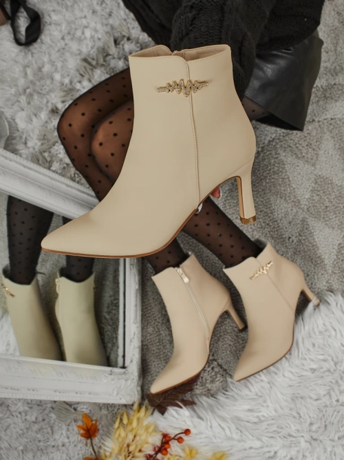 Botki Eleganza Zephyr to idealne połączenie elegancji i nowoczesności, które odpowiedzą na potrzeby każdego moda. Wykonane z wysokiej jakości, miękkiej skóry ekologicznej, te botki są nie tylko stylowe, ale i przyjazne dla środowiska. Dodatkowo, zastosowana technologia produkcji zapewnia trwałość i komfort użytkowania. Dopełnieniem ich wyjątkowości jest złoty akcent, który przyciąga wzrok i dodaje szyku.