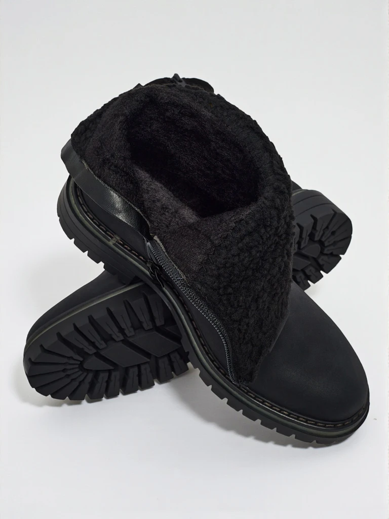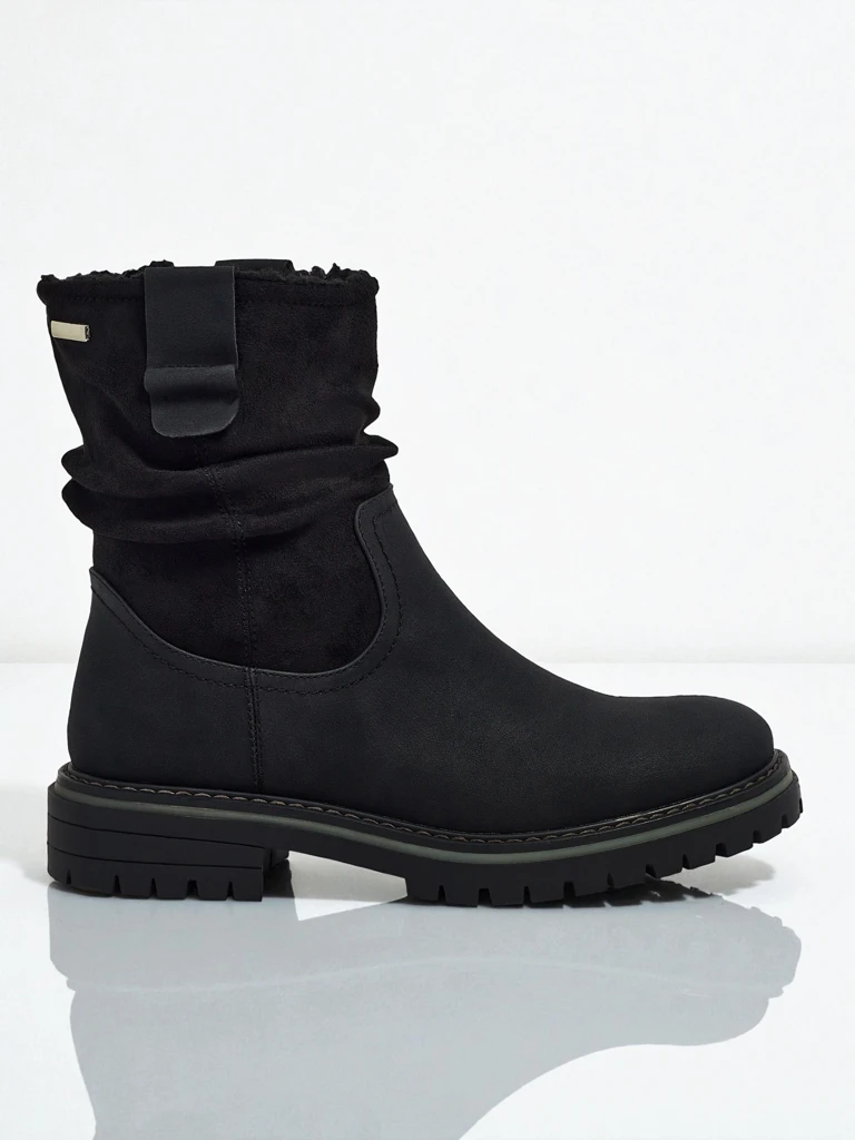 - Женские ботинки на молнии. Модель выполнена из эко-замши, на плоской подошве. Имеют утеплитель а-ля мех. Украшены слегка присборенным голенищем. Удобные и стильные, идеально подходят для осени!