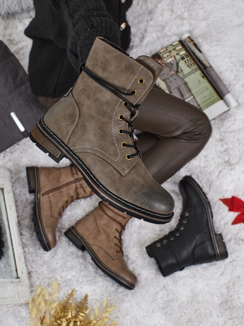 - Женские ботинки из экокожи с молнией, декоративной шнуровкой и круглым носком, дополнительно утеплены мехом – современность, удобство и стиль в одном.
